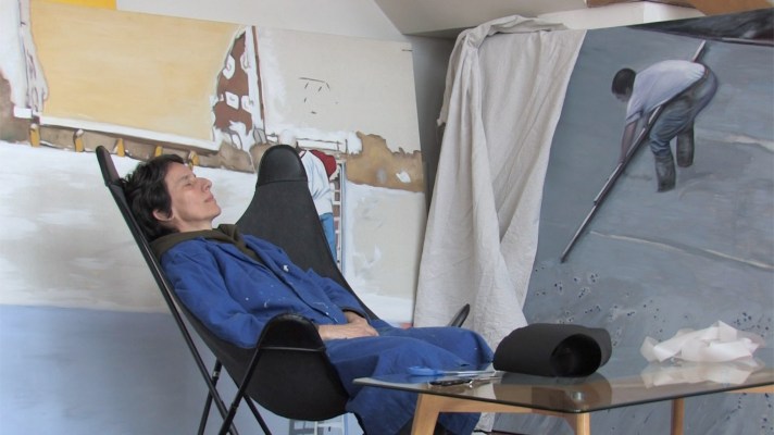 Dans un rêve, sorte d’objet trouvé, Petra visite une exposition organisée par l’artiste. Sur la base de son récit, cette dernière conçoit le projet artistique collaboratif Discourir du rêve au cœur du rêve. Elle décide d’inviter certains de ses proches à vivre une expérience hypnotique similaire, dans un décor constitué de ses dernières peintures d’ouvriers au travail. Le récit oral des visions se fait au cours de la rêverie. Huit personnes participeront à cette performance filmée, dont l’auteur Pierre Guyotat, quelques mois avant sa disparition.