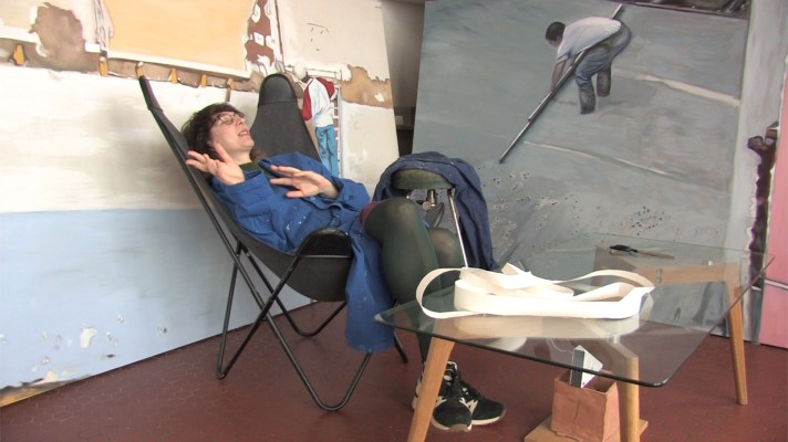 L’enjeu semble donc ne plus être ni l’artefact, ni l’œuvre qui interroge le monde dans le dessein de le transformer, mais la mise en mouvement de l’imaginaire qui suspend l’œuvre en puissance, dans un dispositif qui cherche la beauté simple de la relation à l’autre, dans l’intimité de l’atelier. Le thème du travail ouvrier vient en arrière-plan du travail artistique opérer une sorte de mise en abyme.